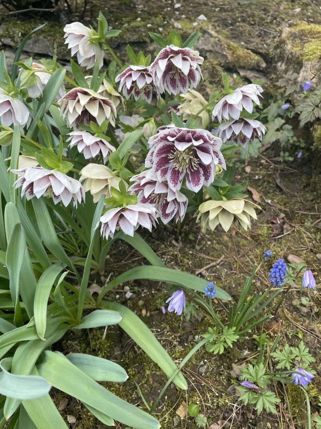 Hellebores are still flowering although the mice and muntjac have nipped off quite a few of the flowers. This beautiful double flower from Ashwood nursery is so beautiful but tends to modestly hang its head rather low.